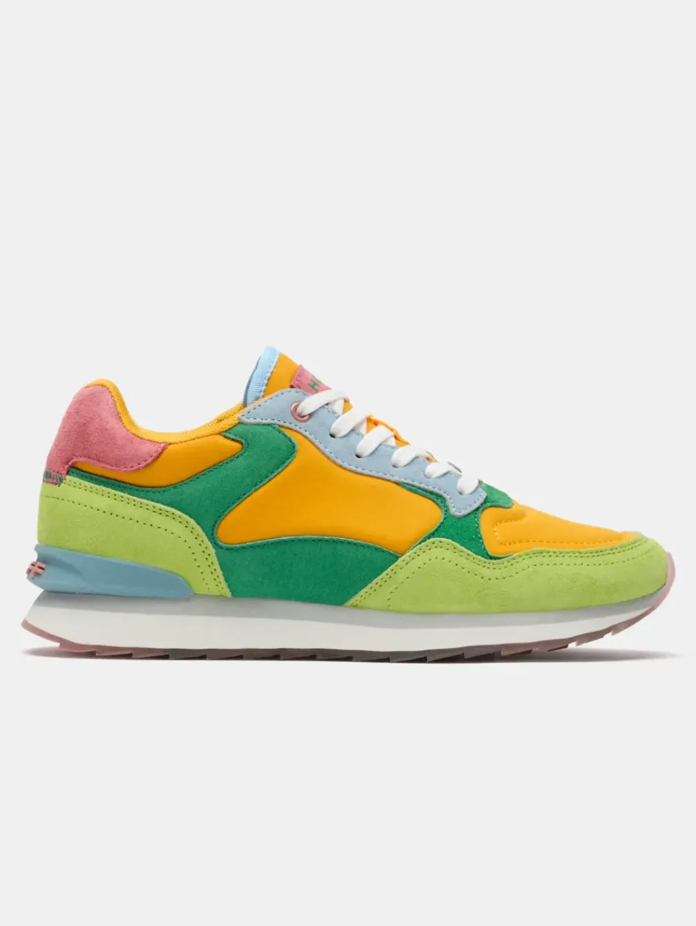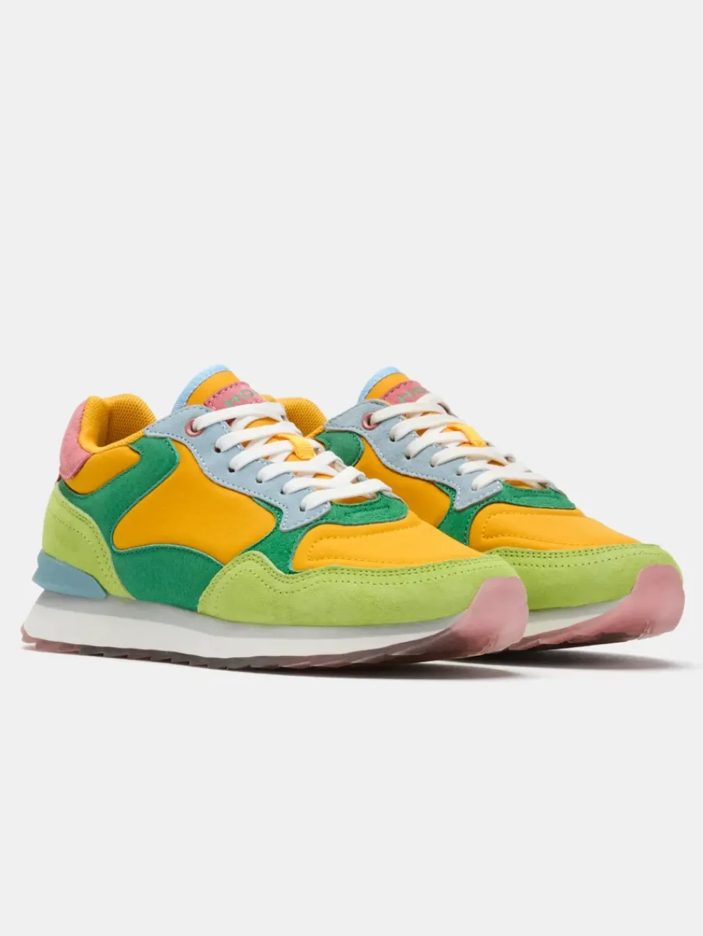 Met Een Op Mui Ne City Geïnspireerd Ontwerp Zijn Deze Sneakers De Perfecte Combinatie Van Helder Geeloranje En Contrasterend Pastelgroen, Klavergroen En Koraal. De Mix Van Materialen Zoals Suède, Stof En Contrasterend Rubber Maken Ze Tot Een Creatief Stuk, Met Een Uniek Ontwerp Voor Jouw Looks. Ze Hebben Een Gewatteerd Effect Aan De Voorkant Van De Stof En Een Dosis Comfort Dankzij De Binnenzool Van Traagschuim. Mis De Essentie Van Elke Schoen Op De Zool Niet En Til Je Streetwear Naar Een Hoger Niveau.