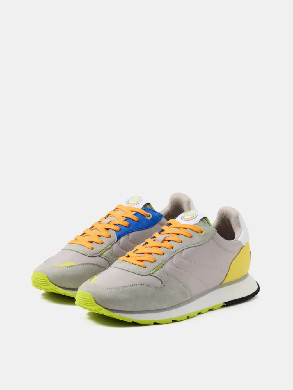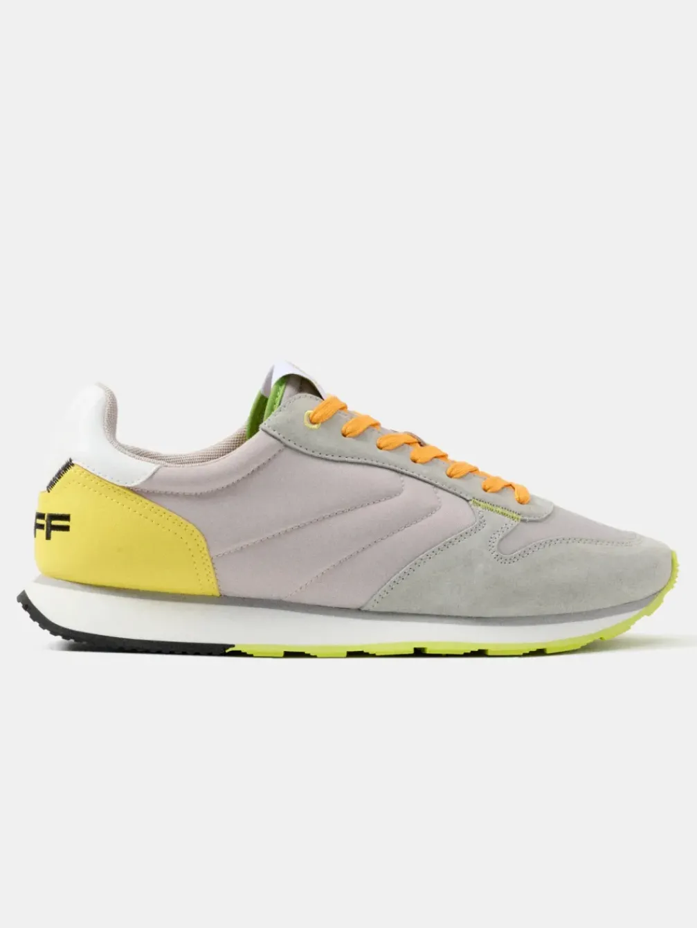 Retro- En Vintage-Stijl Staan Synoniem Voor Antium, Een Samensmelting Van Klassieke En Moderne Elementen In Een Asgrijs Nylon Ontwerp Met Glanzende Asymmetrische Details In Contrasterend Kleinblauw Suède En Fluorescerend Limoengroen. Perfect Om Overal Op Te Vallen En Een Exclusief Tintje Aan Je Look Toe Te Voegen. De Zool, Met Een Wafelachtig Patroon In Groene En Zwarte Tinten, Vergezeld Van Het Reliëflogo En Het Bijpassende Rubberen Detail Bij De Neus, Biedt Een Unieke Finishing Touch. Hun Lichtgewicht En Comfort Zijn Gegarandeerd Dankzij De Binnenzool Van Traagschuim. De Levendige Oranje Veters Maken Ze De Perfecte Keuze Om Een Outfit Naar Een Hoger Niveau Te Tillen En Stijlvol Door Je Favoriete Cafés Te Wandelen.