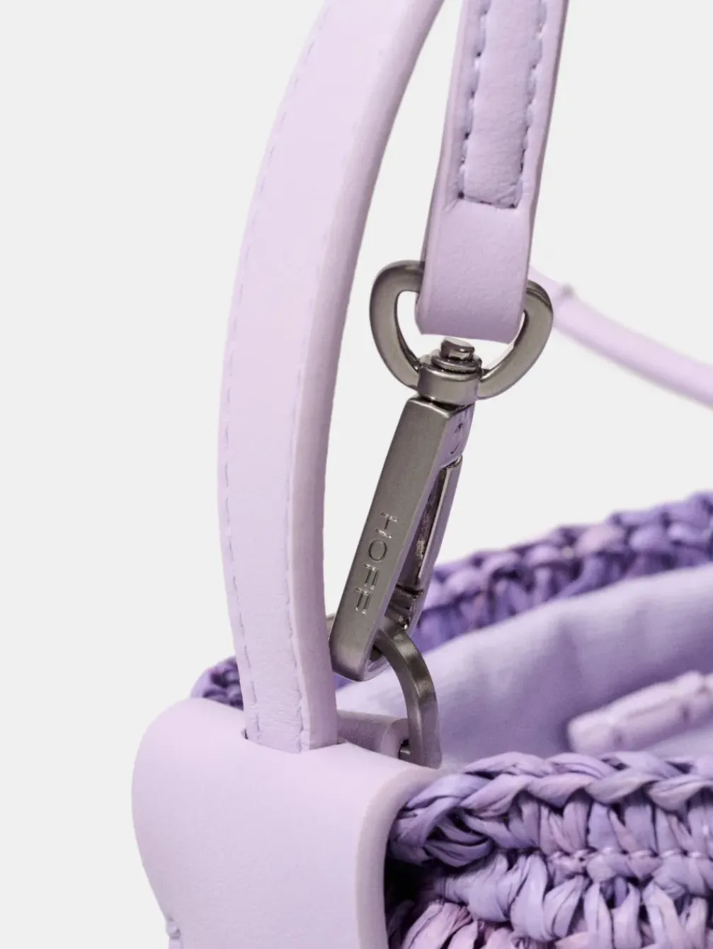 De Iconische Gavina Lila Raffia-Tas In Emmerstijl Heeft Een Sluiting Met Klep En Een Verstelbaar Trekkoord. Het Handvat Maakt Twee Standen Mogelijk: Een Langere, Zoals Een Crossbodyriem Van Synthetisch Leer, En Een Kortere Om In De Hand Te Dragen. Het Ontwerp Roept De Essentie Van De Zomer Op, Elegant En Verfijnd, Hoewel De Parijse Streetstyle Heeft Laten Zien Dat Het Een Perfect Kledingstuk Is Voor Elk Seizoen.