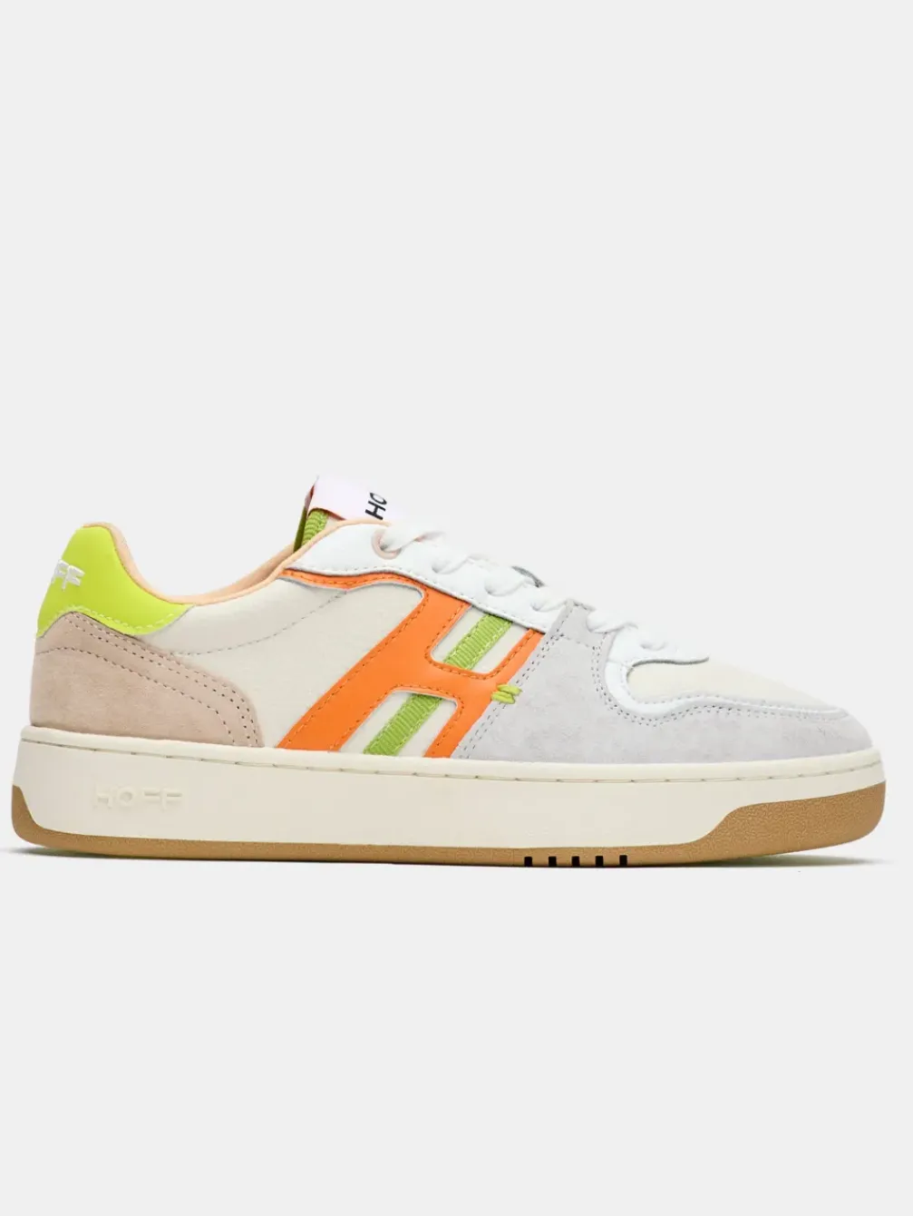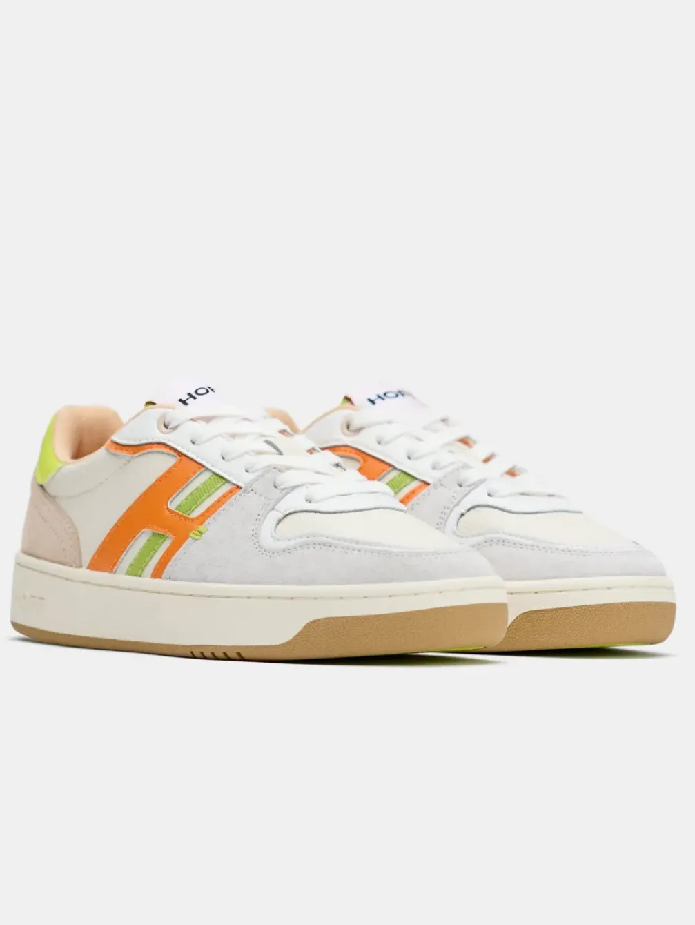 Geïnspireerd Door Het Gamla Stan-Seizoen, Combineert Dit Model Veelzijdigheid En Moderniteit In Zijn Sportieve Ontwerp. Het Heeft Een Bamba-Skate-Stijl En Valt Op Met Witte, Oranje En Limoengroene Lederen Details En Suède Stukken In Grijs En Kaki. De Memory-Foam Sockliner Zorgt Ervoor Dat Deze Schoenen Comfortabel Lopen. De Buitenzool Van Gerecycled Rubber Bootst De Stevigheid Van Seizoensgebonden Bestrating Na, Geaccentueerd Door Fluorescerende Groene En Gemarmerde Details. Het Geborduurde Logo Aan De Achterkant Voegt De Handtekening Van Het Merk Toe. Ze Zijn Ideaal Om Elke Look Naar Een Hoger Niveau Te Tillen, Een Basic Met Persoonlijkheid Die Je Kunt Dragen Met Een Rok Of Jeans.