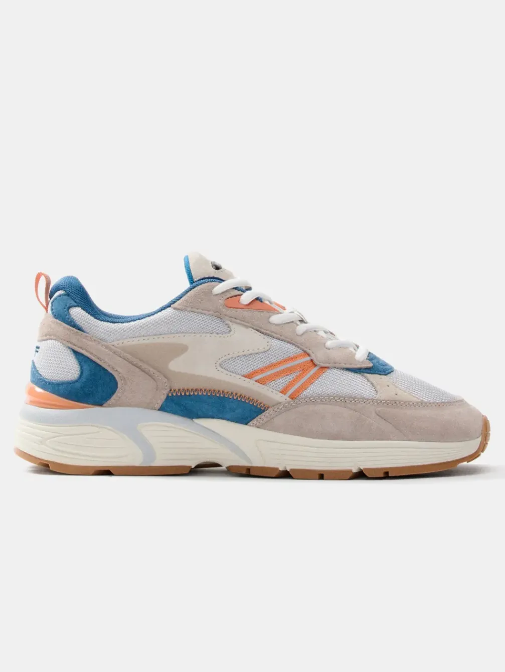 Geïnspireerd Door Indiana, Combineren Deze Hardloopschoenen Uit De State Collection Perfect Materialen Zoals Suède, Mesh En Rubberen Inzetstukken. Hun Unieke Ontwerp Wordt Benadrukt Door De Uitgebalanceerde Combinatie Van Blauwe En Grijze Tinten In Contrast Met Oranje, Perfect Voor Stijlvolle Looks Met Persoonlijkheid. Dankzij De Binnenzool Van Traagschuim Zijn Ze De Ideale Metgezel Voor Lange Dagen Of Voor Op Kantoor. De Dikke Rubberen Zool Heeft Grijsblauwe Details Die Het Witte Gaas Aan De Zijkanten En Het Bovenwerk Aanvullen, Samen Met Reflecterende Details, Een Rubberen Accent En Een Opvallend Geborduurd Logo. Een Favoriet In Streetstyle.