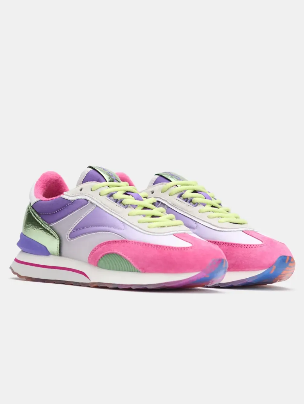 De Art X Yukaidu-Collectie Combineert Kunst En Mode Naadloos. Deze Star Fruit Sneakers Weerspiegelen De Inspiratie Van De Kunstenaar En Combineren Haar Liefde Voor Geometrische Vormen En Levendige Patronen. Ze Combineren Op Unieke Wijze Materialen Zoals Leer, Suède En Rubberen Details, Waardoor Een Speciaal Samenspel Van Texturen Ontstaat. De Kleurencombinatie, Zoals Purple Degrade, Magenta, Lime Green En Metallic Green, Maakt Er Zelf Kunstwerken Van. Met Een Vleugje Retro In Hun Silhouet Wordt Comfort Verzekerd Door De Binnenzool Van Traagschuim. Deze Sneakers Zijn Perfect Om Een Uniek Tintje Aan Je Look Toe Te Voegen En Een Statement Te Maken, Waar Je Ook Gaat.