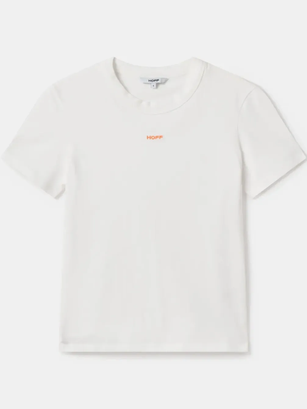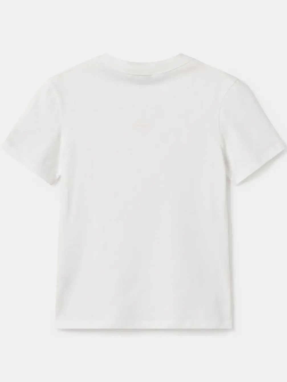 Terug Naar De Basis. Wit T-Shirt Van 100% Biologisch Katoen. Ronde Hals En Korte Mouwen. Geborduurd Detail Op De Borst In Contrasterende Kleuren.