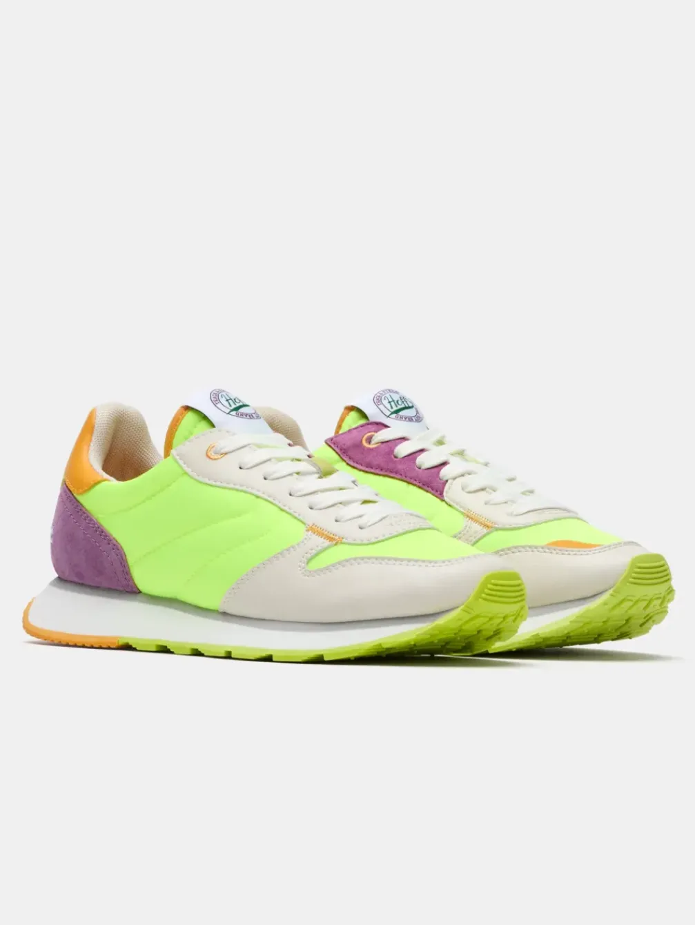 De Tegea Combineert Klassieke En Moderne Esthetiek En Streeft Ernaar Impact Te Maken. Ze Zijn Gemaakt Van Fluorescerend Groen Nylon En Bieden Een Onderscheidend Voorstel Voor Retro- En Vintageliefhebbers. Asymmetrische Details Van Paars Suède En Grijskleurig Leer Aan De Voorkant, Geaccentueerd Door Een Vleugje Mosterdrubber, Verhogen De Premium Essentie Van Dit Silhouet. De Zool In Wafelstijl In Limoengroen En Mosterd, Aangevuld Met Het Reliëflogo, Zorgt Voor Een Finishing Touch Die Bij Elke Stap Moderniteit Uitstraalt. Lichtgewicht En Comfort Gaan Naadloos Samen Met De Binnenzool Van Traagschuim, Waardoor Ze De Perfecte Keuze Zijn Om Uw Casual-Chique Stijl Naar Een Hoger Niveau Te Tillen Met Uw Favoriete Jeans.